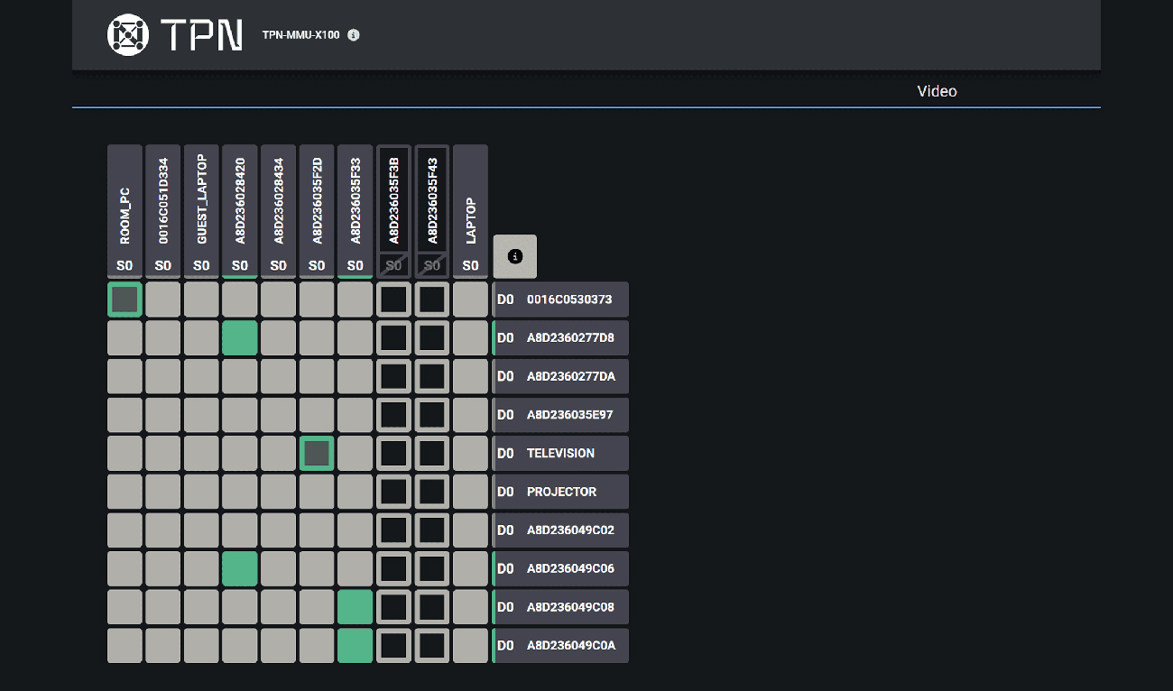 MMU(マトリックスマネジメントユニット)は、SDVoEネットワーク上のすべてのエンドポイントおよびスイッチを自動検出し、監視・設定・ルーティング・制御を一元管理できる統合プラットフォームです。トポロジー表示や映像ルーティングも含め、単一インターフェースでシステム全体を監視・操作できます。