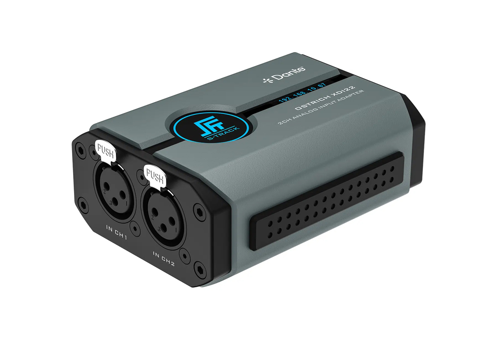 OSTRICH XDI22は、2チャンネルのアナログ入力用Danteオーディオインターフェースです。アナログ音声信号をデジタル信号に変換し、Danteネットワークを介して任意のDante対応デバイスへルーティング可能です。高品質なAD変換チップを採用し、原音に忠実な音質を維持しながら、長距離・低遅延・高耐ノイズの伝送を実現します。従来のアナログ機器とDanteネットワークシステムをシームレスに接続し、既存設備をネットワークオーディオ環境へ容易に拡張することができます。