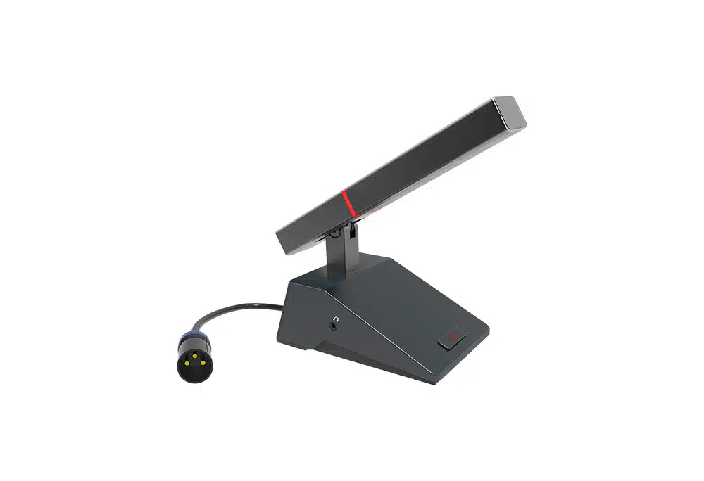 スーパーカーディオイド特性の高感度カプセルを搭載し、約40〜80cmの距離で明瞭な音声を収音。さらに、ホットスワップ対応設計とショートサーキット保護機能を備え、システムの安全性と信頼性を確保します。マイク部には物理的なオン/オフスイッチを装備し、直感的な操作が可能です。