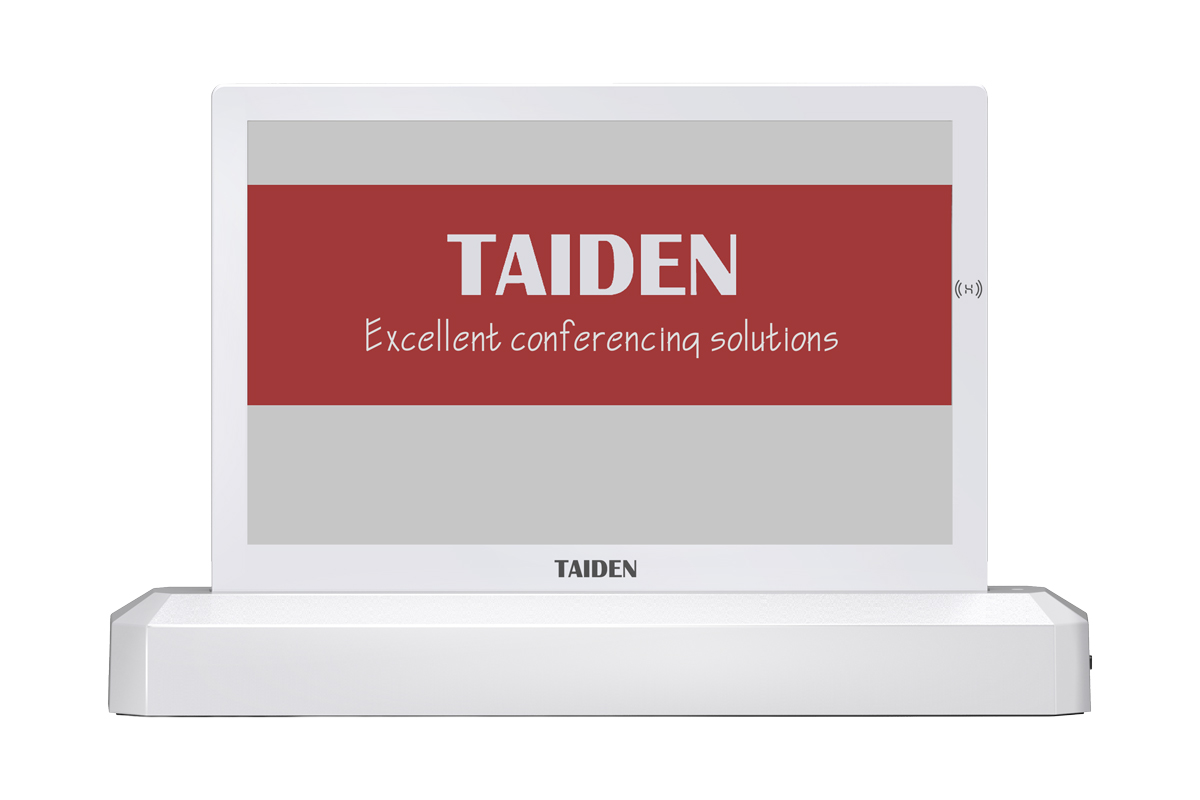 Bluetooth接続に対応し、内蔵NFCタグを使用したワンタッチ操作が可能。会議終了後にはワンタッチで画面消去を行うことができ、参加者情報の保護や情報漏えい防止に効果的です。また、HCS-1085Tネームプレートアダプターを介してTAIDEN会議システムと接続することで、集中管理・一元制御にも対応します。
