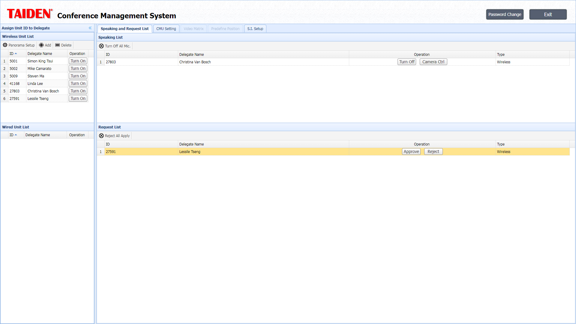 HCS-5300M/80Aシリーズメインユニットに内蔵された制御ソフトウェア。Webブラウザ経由でシステムの遠隔制御および管理が可能です。会議設定の変更、会議状況のモニタリング、マイク制御などを直感的に行うことができます。